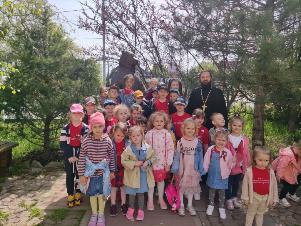 В дни Светлой седмицы храм прп. Серафима Саровского посетили воспитанники дошкольного отделения Юридической гимназии № 9 имени М. М. Сперанского. Экскурсию по подворью храма провел настоятель прихода иерей Александр Орешин.