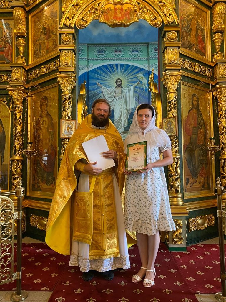 31 июля 2022 года настоятель храма преподобного Серафима Саровского вручил грамоты. В этот воскресный день настоятель прихода иерей Александр Орешин вручил грамоты во внимание к трудам прихожанкам храма, которые трудятся на благо нашего прихода. Наши сестры трудятся на различных попроищах церковного служения, кто-то помогает в уборке, кто-то в социальной сфере благотворительности, некоторые сёстры трудятся на клиросе помогая в чтении и пении за богослужением.